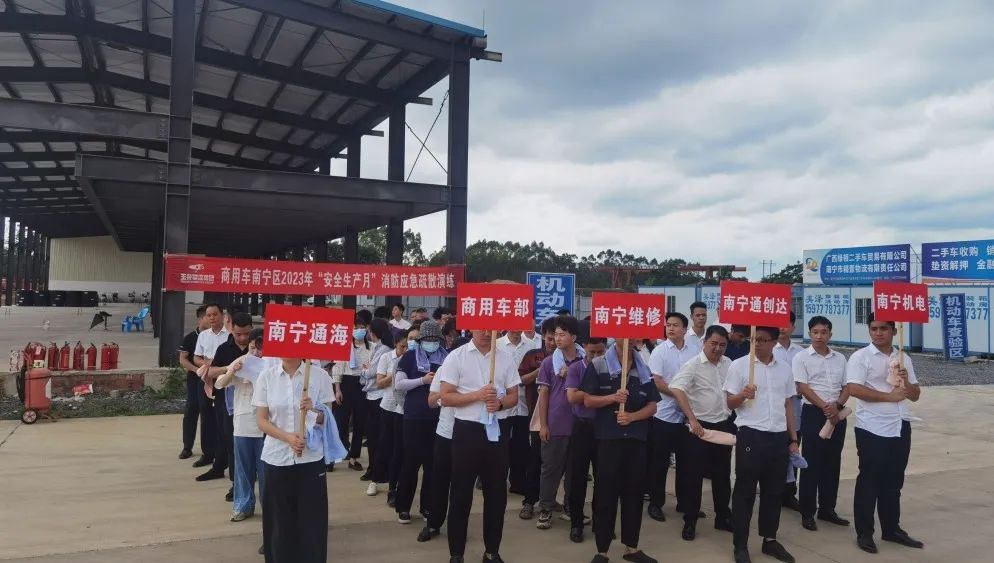 6月19日,商用車板塊南寧區域子公司在南寧(東盟)物流卡車產業園內舉行了消防應急疏散演練。隨著應急警報鈴聲響起,演練正式開始。全體員工從辦公樓彎腰、雙手捂嘴、穿越重重濃煙迅速撤離到安全的位置。整個過程員工們都能做到有秩序、行動快速、配合默契,沒有出現混亂的場面。疏散演習結束后,就是精彩的滅火技能比拼了。比拼前先講解了滅火器和消防水帶的使用方法,之后進行滅火技能比拼,在一聲聲哨響聲中,比拼結束,大家也通過自己的努力獲得了滅火的技能。