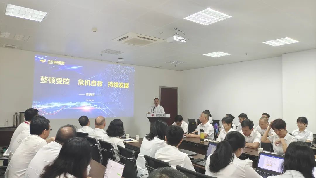 隨后,玉柴物流集團黨委書記、董事長陳德堅以《整頓受控、危機自救、持續(xù)發(fā)展》為題作了報告。報告介紹了公司當前工作重點、持續(xù)發(fā)展思路、當前存在的希望點及后續(xù)經(jīng)營目標和重點工作。